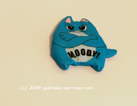 Der grimmig dreinschauende Moody ist aber sonst ein ganz lieber :). Er meckert bloss, weil er wieder mit Katzenminze aufgefüllt werden möchte. Ausserdem knistert er noch bei Berührung!